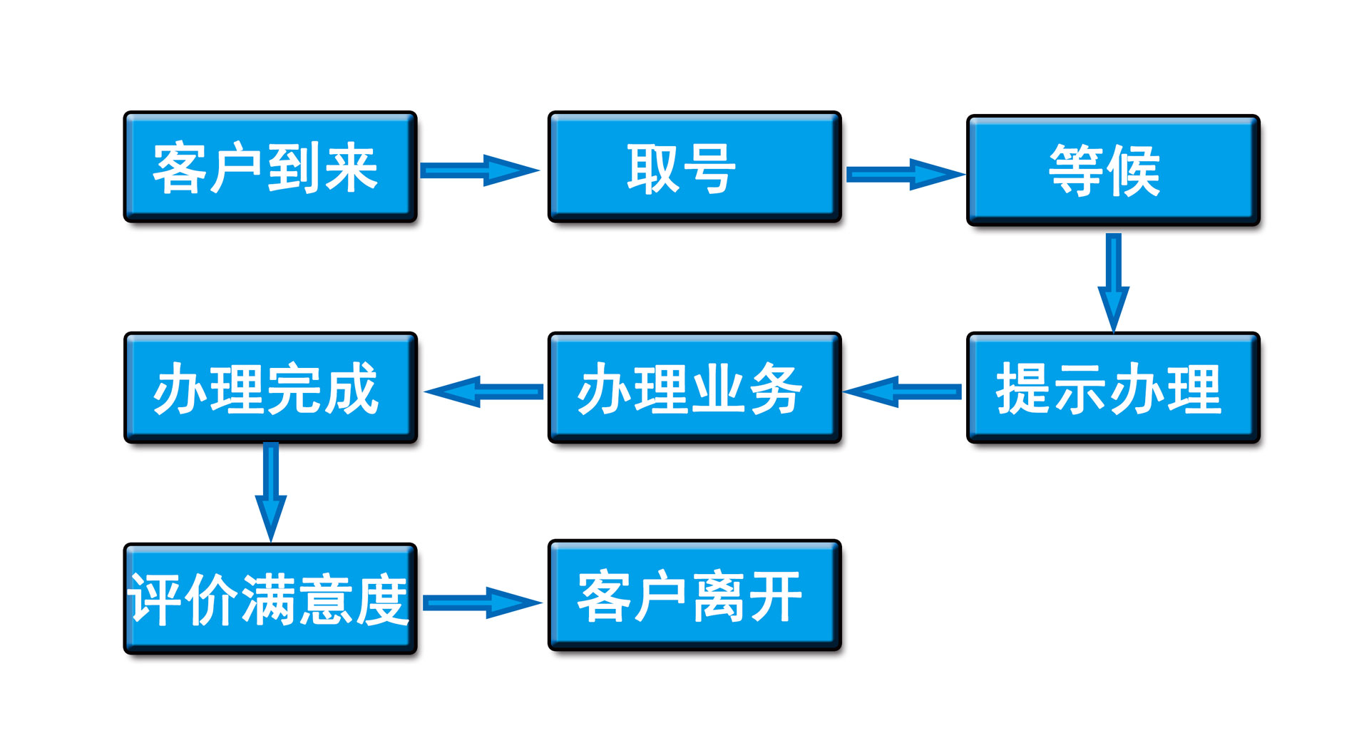 二、排隊(duì)叫號(hào)管理系統(tǒng)服務(wù)流程: