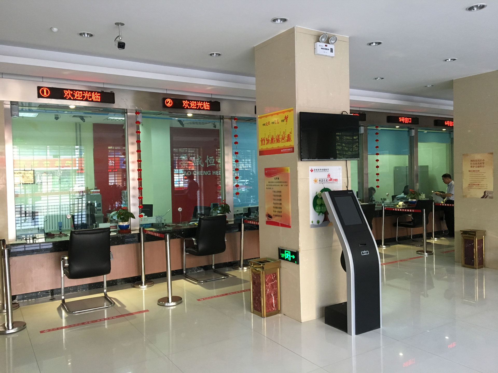 當(dāng)客戶抵達(dá)營業(yè)廳時(shí),前往放置于大廳內(nèi)的取號(hào)機(jī)處,選擇自己所需辦理的業(yè)務(wù),取號(hào)機(jī)會(huì)自動(dòng)打印出一張排隊(duì)小票,同時(shí)系統(tǒng)自動(dòng)將該序號(hào)信息由取號(hào)機(jī)傳至呼叫和排隊(duì)管理系統(tǒng)數(shù)據(jù)庫中??蛻舾鶕?jù)排隊(duì)小票提示來到等候區(qū)域等候。當(dāng)工作人員需要客戶前來接受服務(wù)時(shí),按一下呼叫器上的“呼叫”鍵,請(qǐng)求會(huì)發(fā)送到管理軟件,“請(qǐng)到XXX號(hào)到X號(hào)窗口辦理業(yè)務(wù)”進(jìn)行播報(bào),以提醒客戶,客戶可從指示屏上得知柜臺(tái)號(hào)等信息,前去辦理即可。