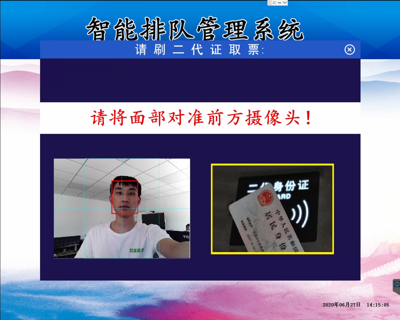 基于此,并結(jié)合當(dāng)前人臉識(shí)別系統(tǒng)及人證識(shí)別管理系統(tǒng),形成了一套完整的人證對(duì)比排隊(duì)系統(tǒng)方案,以此來解決窗口服務(wù)行業(yè)當(dāng)中票販子一人反復(fù)取號(hào),一證多號(hào)的問題。從而提高用戶的服務(wù)體驗(yàn),提升現(xiàn)場業(yè)務(wù)辦理的整體效率。