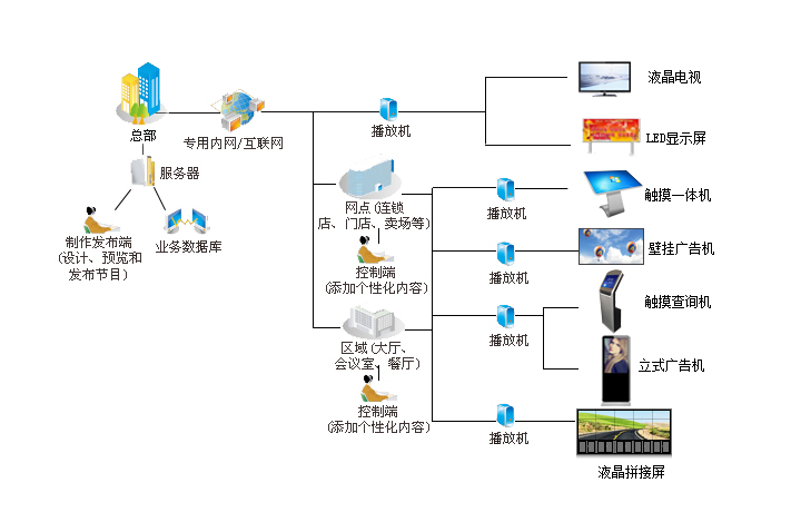 多媒體信息發(fā)布系統(tǒng)是利用顯示屏將企業(yè)宣傳、實時通知全方位展現出來的一種高清多媒體顯示技術。系統(tǒng)是將音視頻、電視畫面、圖片、動畫、文本、文檔、網頁、流媒體、數據庫數據等組合成一段段精彩的節(jié)目,并通過網絡將制作好的節(jié)目實時的推送到分布在各地的媒體顯示終端,從而將精彩的畫面、實時的信息資訊在各種指定場所全方位的展現在所需的群眾眼前。