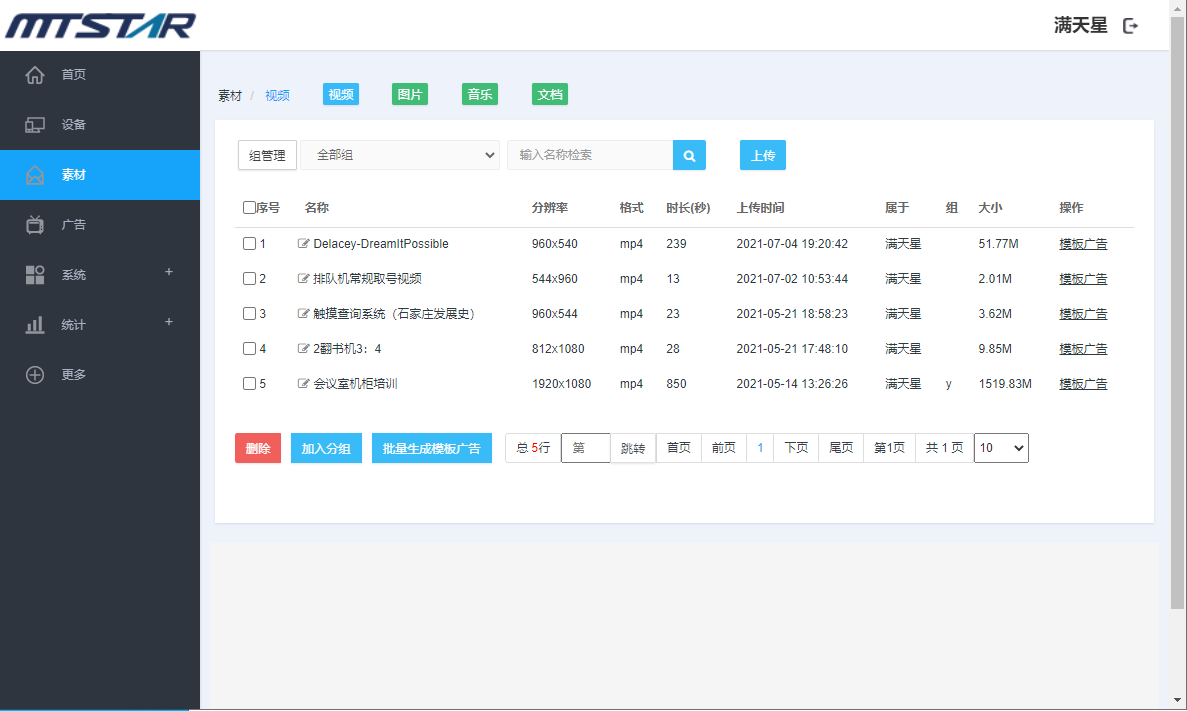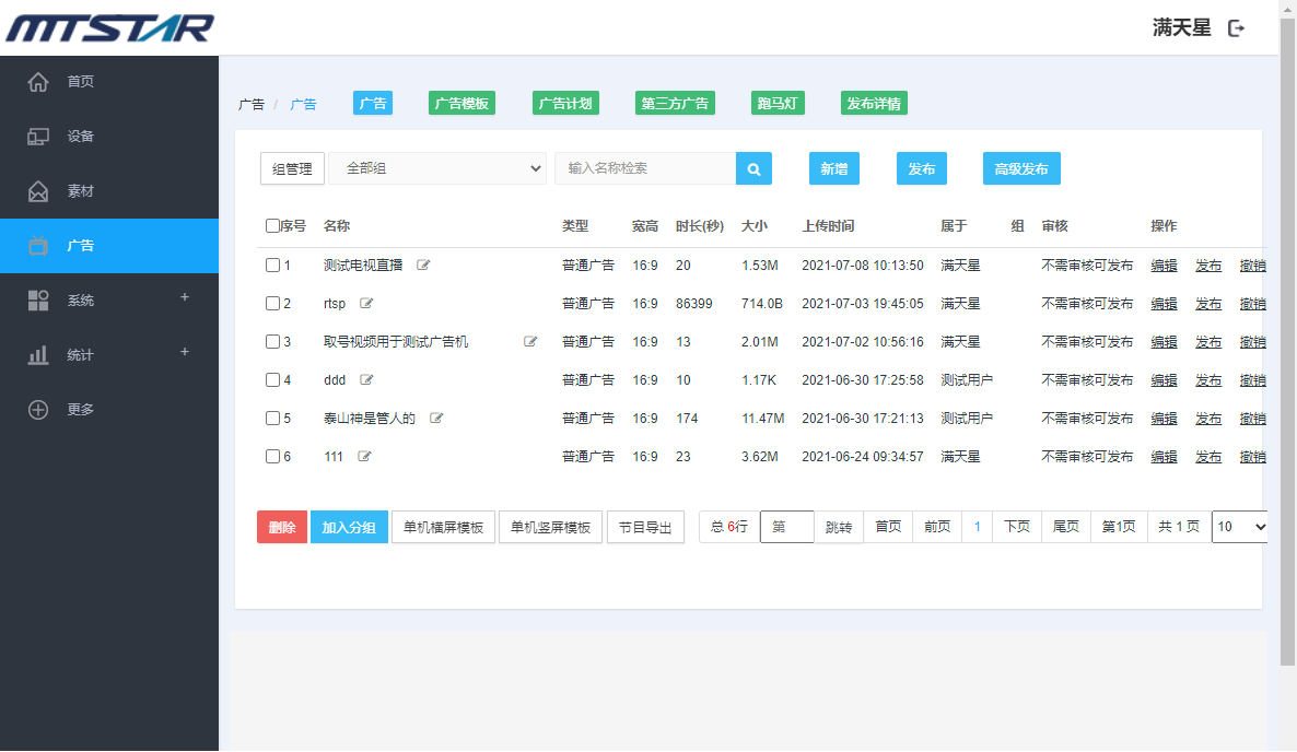 (3)終端管理:終端監(jiān)控、快速發(fā)布、時間同步、音量調節(jié)、下載限速、開關機、遠程更新、觸摸管理等;