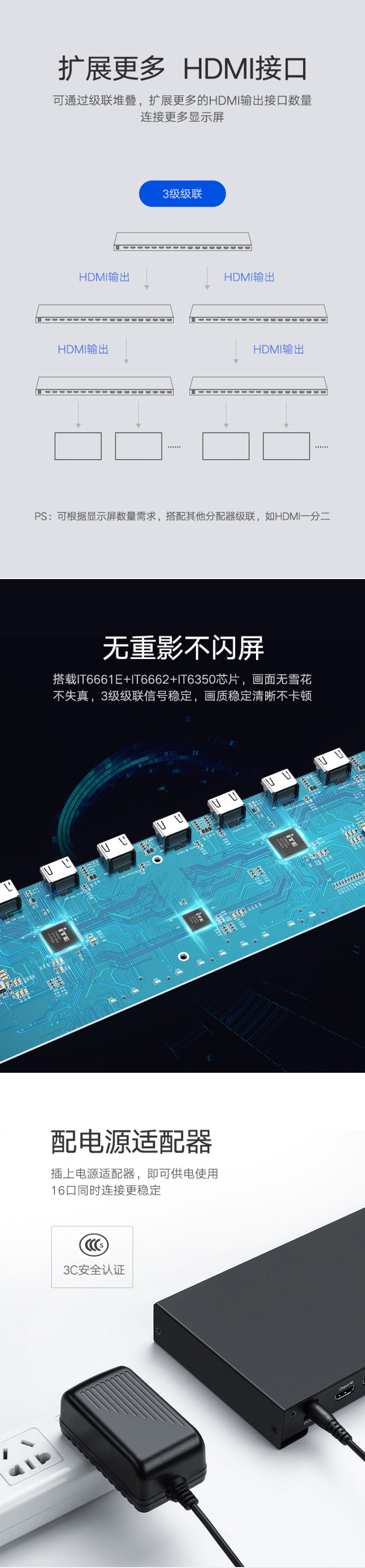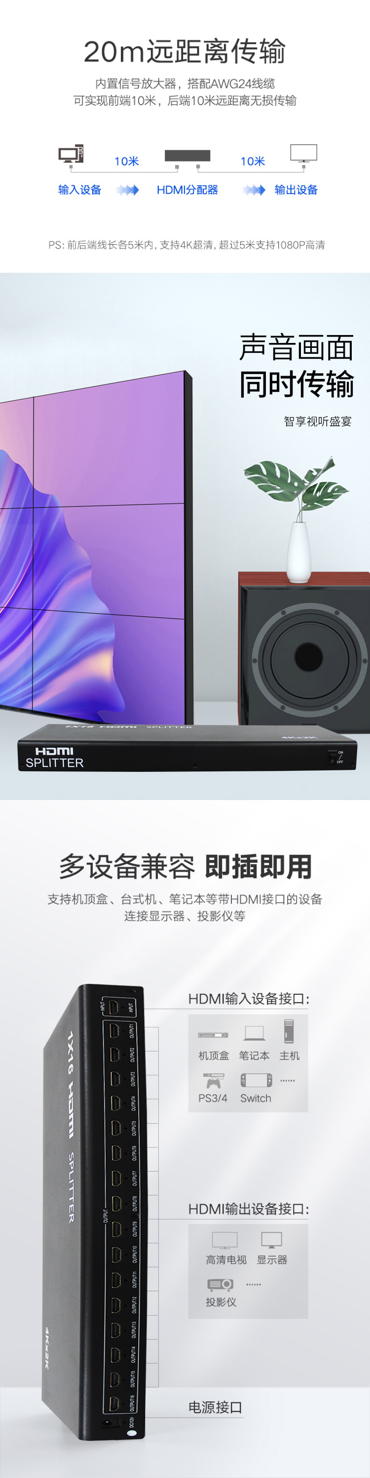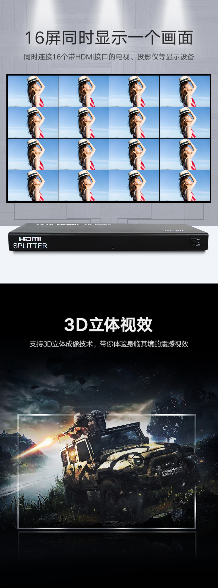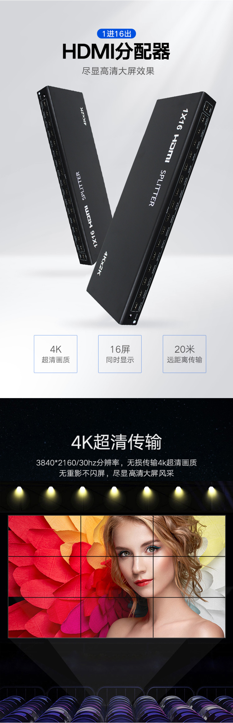 產(chǎn)品用途:搭配拼接屏使用,連接拼接屏與電腦主機(jī),支持1路HDMI信號輸入,16路輸出,支持整屏顯示