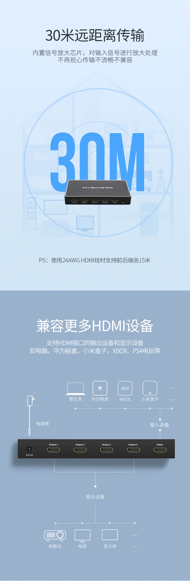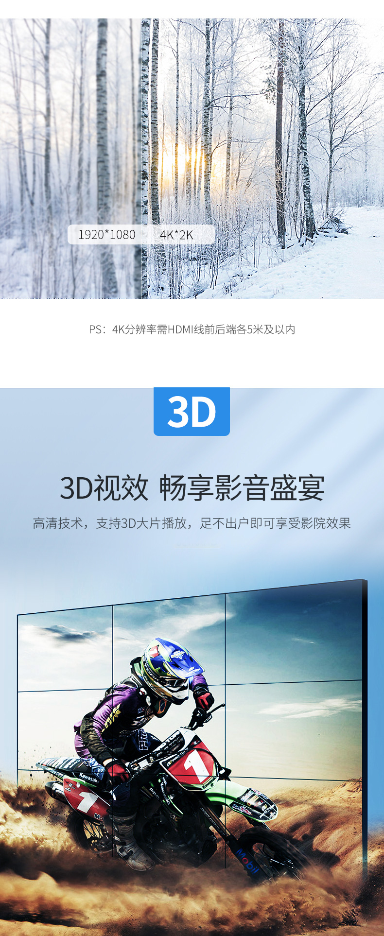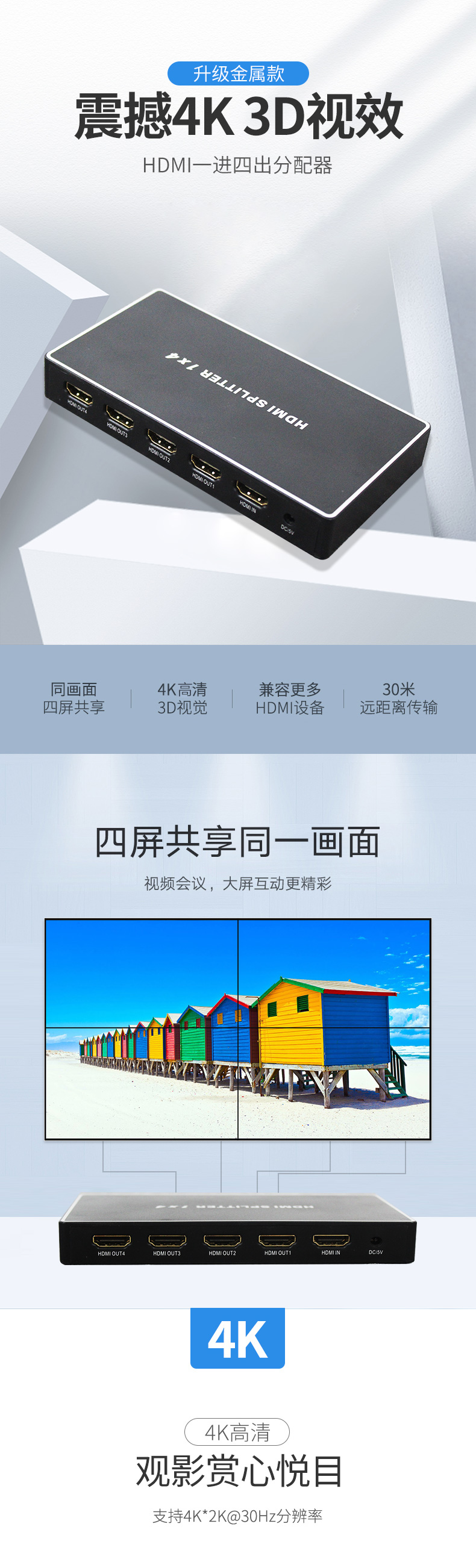 產(chǎn)品用途:搭配拼接屏使用,連接拼接屏與電腦主機,支持1路HDMI信號輸入,4路輸出,支持整屏顯示